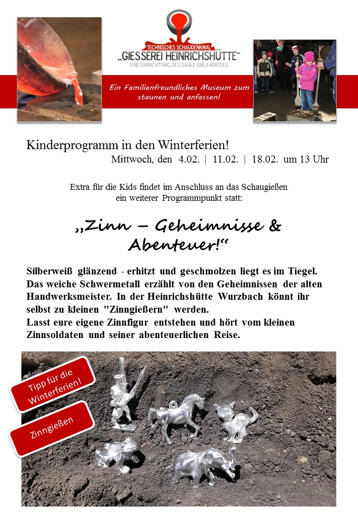 Mittwoch, den 04. Februar um 13 Uhr mit Kinderprogramm im Anschluss „Zinn – Geheimnisse und Abenteuer“